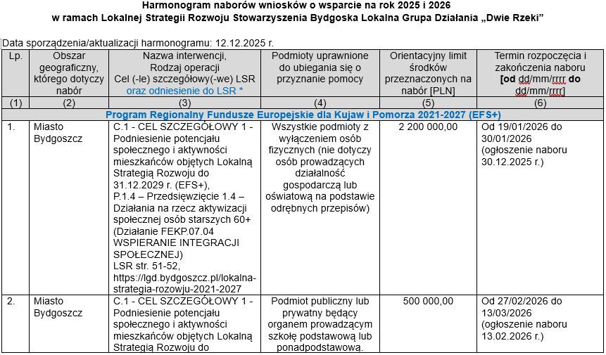 Harmonogram naborów wniosków o wsparcie
